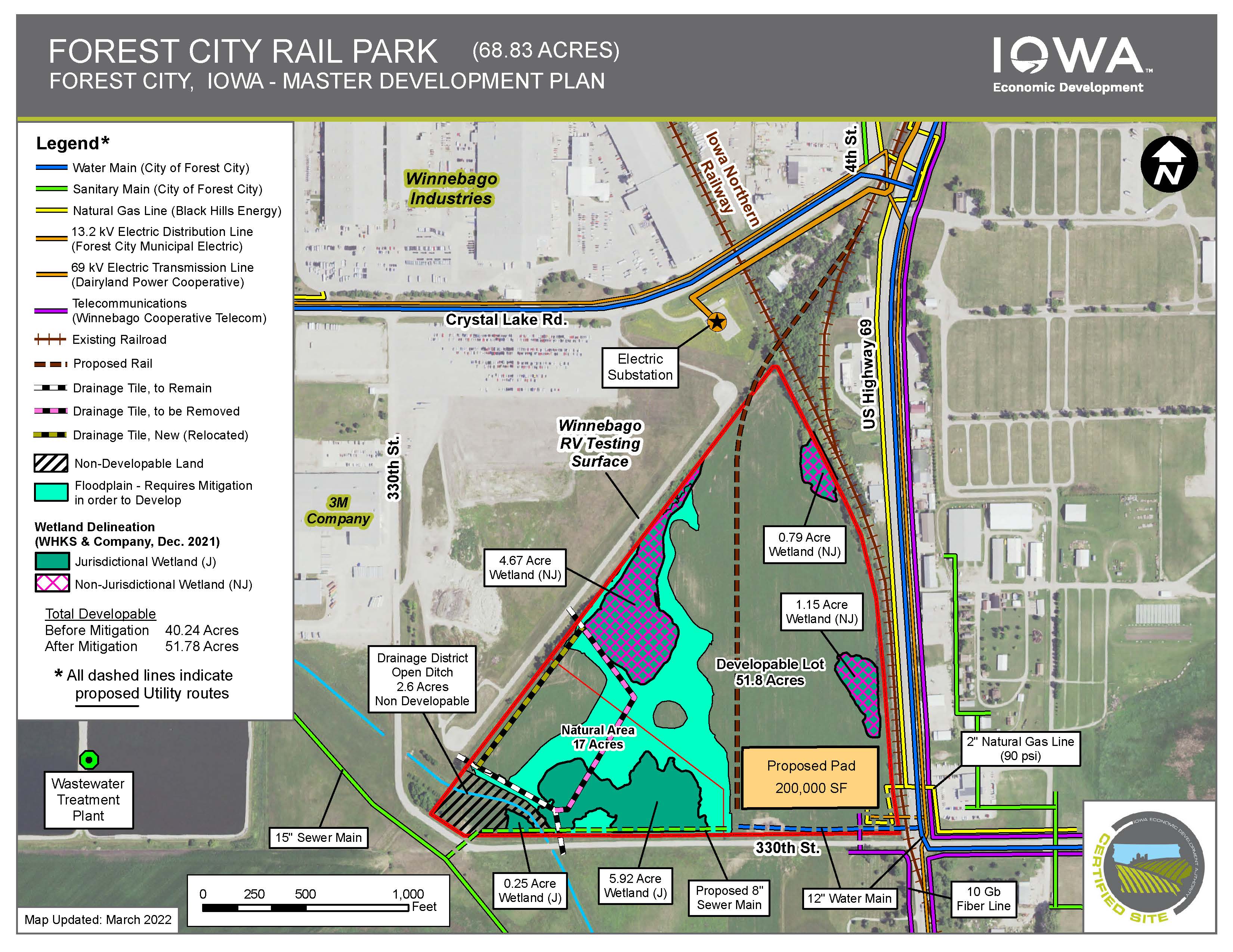 As a Certified Site, the Rail Park has completed all surveys, and any risks detailed in these reports mitigated. These include, but are not limited to, Phases 1 and 2 Environmental Surveys, Cultural and Endangered Species Assessment, Soil Surveys and Borings, and Wetlands Delineation. Additionally, Road, Utility and Other Infrastructure Engineering Plans are in place.