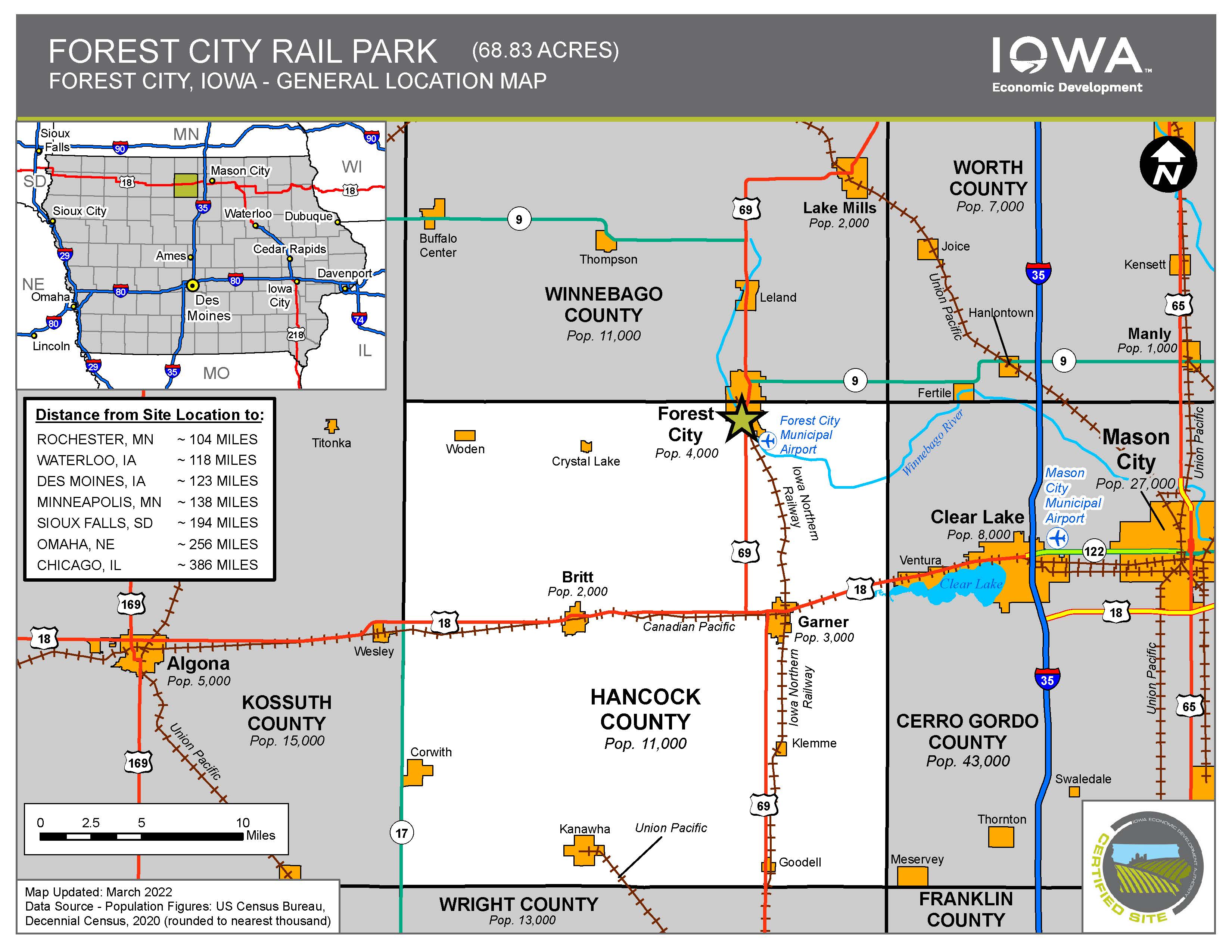 The city of Forest City is a friendly community Where Nature’s Close and Friends are Closer! Located in North Central Iowa, 15 miles west of Interstate 35 and 120 miles from both Minneapolis and Des Moines.