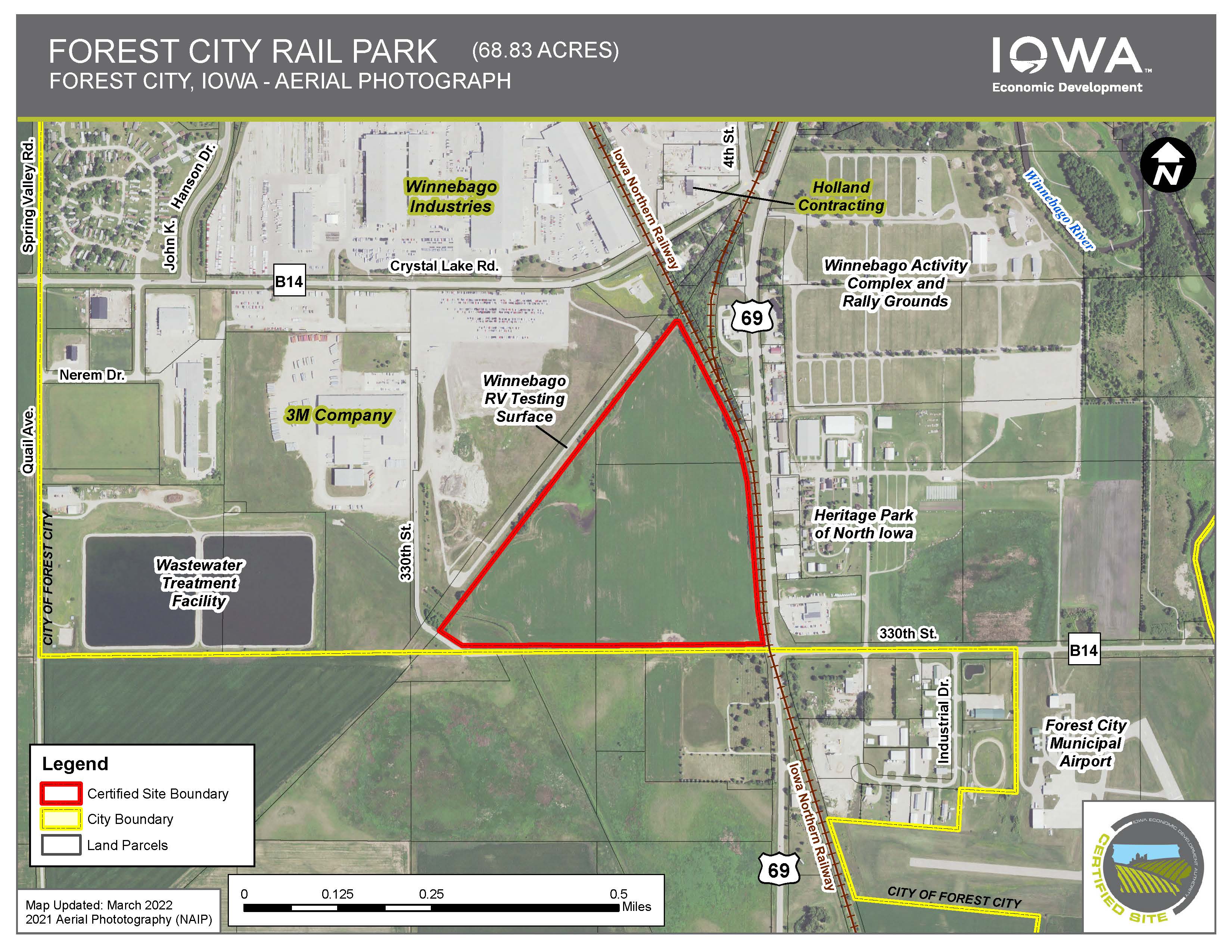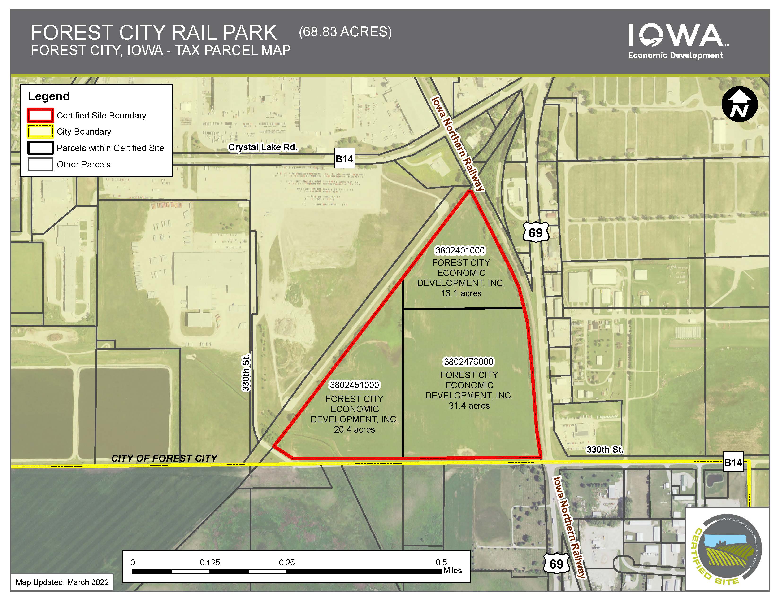 The Forest City Rail Park is comprised of a total of 68.83 acres with 55 acres certified for industrial development. The property is owned by Forest City Economic Development and is ready for development.