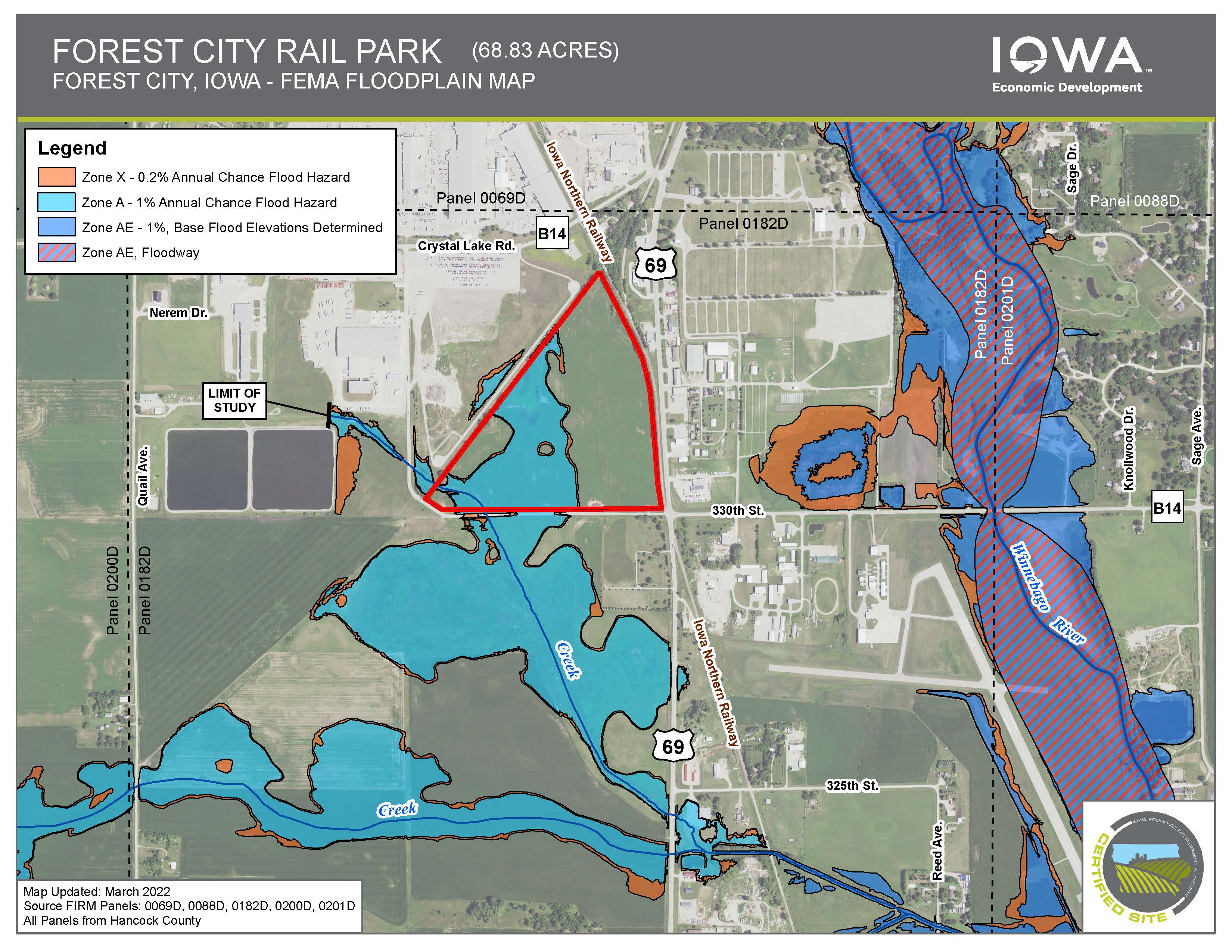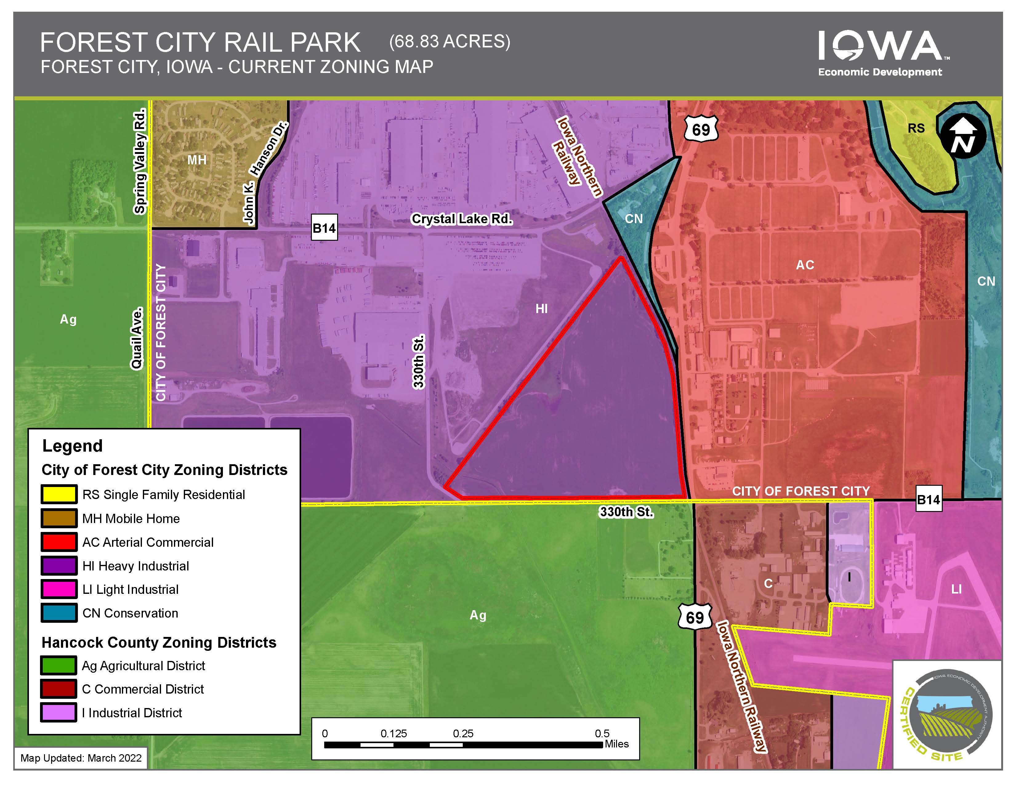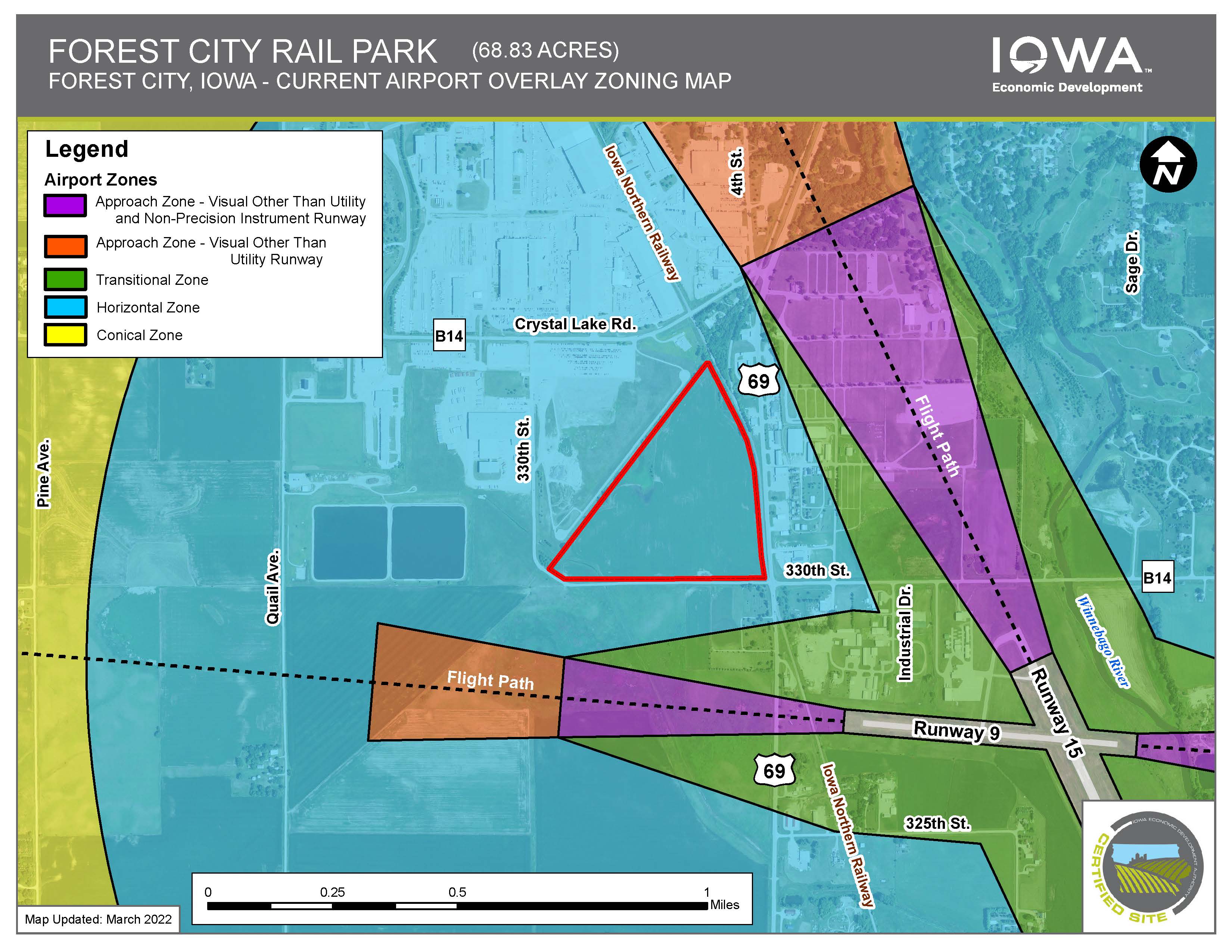Iowa Northern Railway (IANR) offers service to this site through a rail spur to be constructed within the property. Three designs have been created by IANR for spurs depending on a business’ needs. IANR has three direct Class 1 interchanges and a short line interchange. With all these connections, customers have access to all Class 1 railroads and the entire North American rail network.